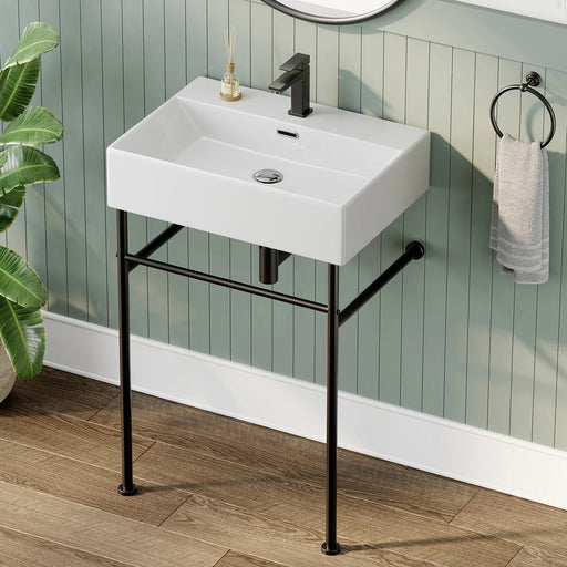 View full detailsThe HOROW CS6042-MB console sink features sleek black legs, a durable drain fit, and high-temp or oil resistance. Perfect for modern bathrooms,...
