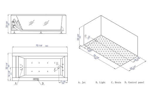 EAGO AM196ETL – 6′ Clear Rectangular Whirlpool Bathtub for Two Elevate your bathroom aesthetic and unwind together — the EAGO AM196ETL combines sle...
