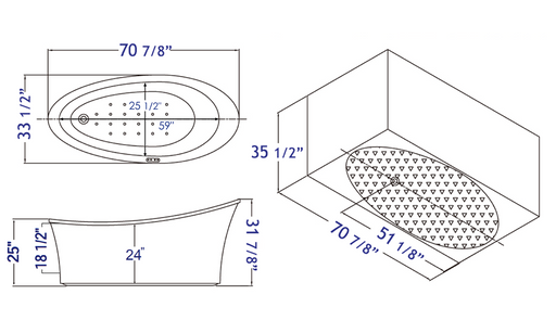 EAGO AM1800 – 70" White Freestanding Oval Air Bubble Bathtub Unwind in pure indulgence with the EAGO AM1800 Freestanding Oval Air Bubble Bathtub. A...