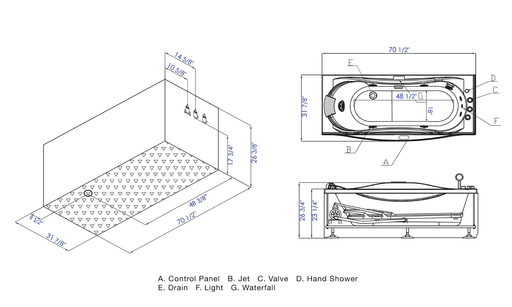 EAGO AM154ETL-L6 – 6ft′ Rectangular Whirlpool Bathtub with Fixtures With its perfect blend of form, performance, and advanced features, the EAGO AM...