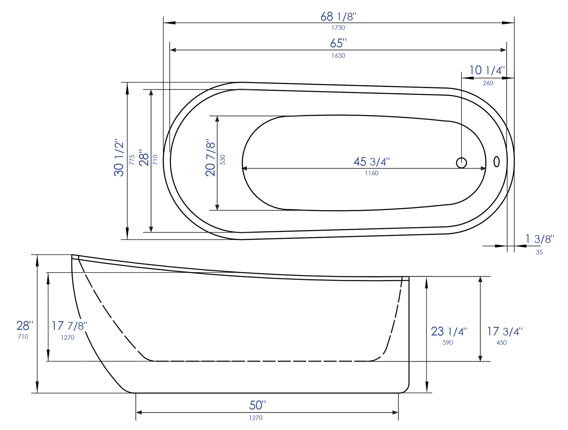 Short Description | This beautiful 68 inch ALFI brand freestanding acrylic soaking tub, makes it easy to include an elegant and luxurious centerpiece in your bathroom. Smooth sophisticated edges and an extra deep soaking experience make this tub the perfect choice for anyone looking to transform their bathroom decor into a modern oasis. Superior quality construction provides you with an exceptionally durable material, light, and smooth interior and exterior finish. |