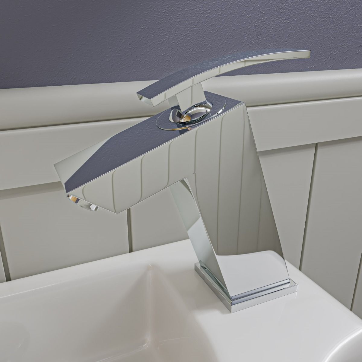 No overflow hole — creates a clean, uncluttered basin look and allows design flexibility while requiring a compatible no-overflow drain setup.