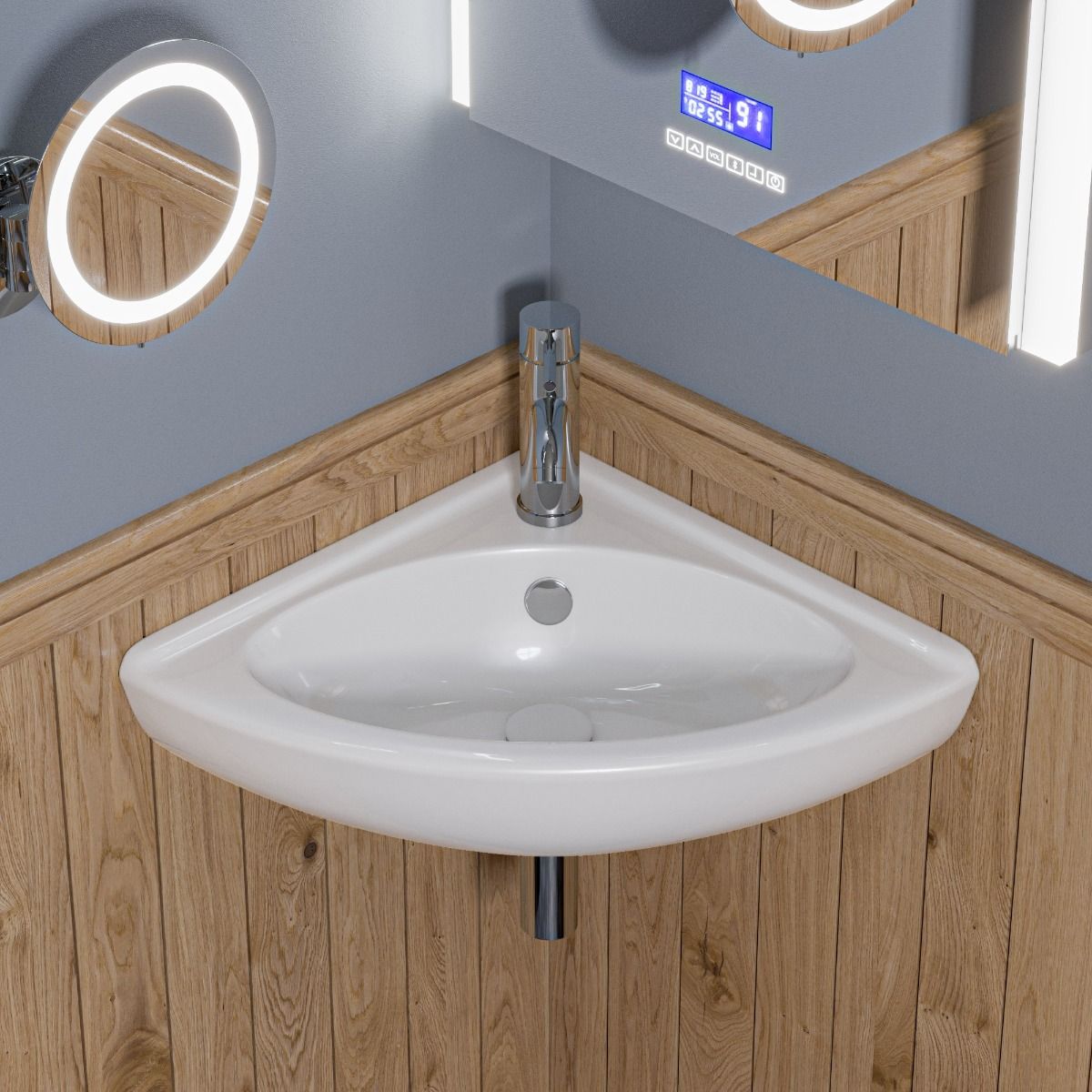 Short Description | A simple small porcelain wall mounted bathroom sink is sometimes harder to find than you might think. This ALFI brand corner sink offers a modern sink design in a compact size and convenient shape. Perfect for upgrading small bathrooms or powder rooms. |