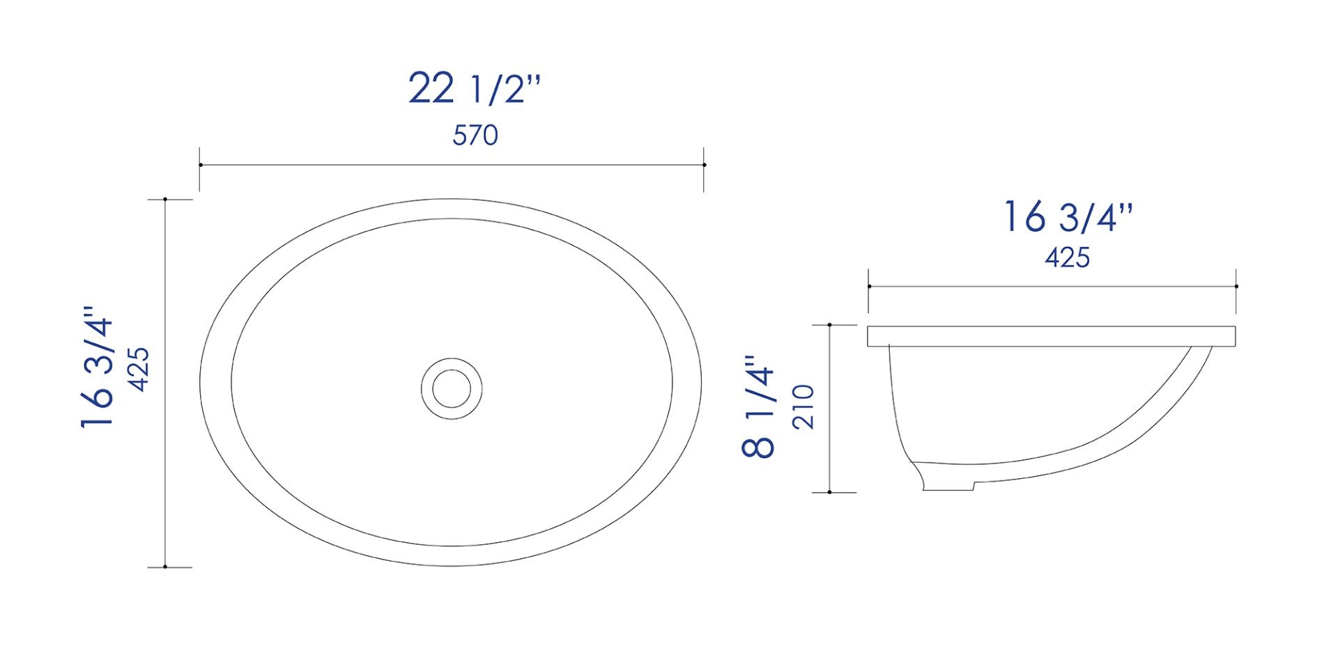 Short Description | This sink gets the job done in the most classic way with the worlds most commonly used type of bathroom sink. A ceramic oval undermount sink that is timeless and will never go out of style. Also available in a round shape (ABC601) or a rectangular shape (ABC603). Undermount installation is the most convenient because it allows you to swish water from the counter directly into your sink with your hand and makes it so there is no exposed silicone or grout border between the sink and the countertop. |