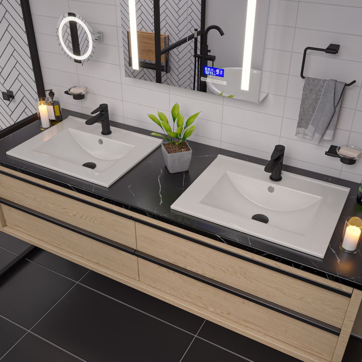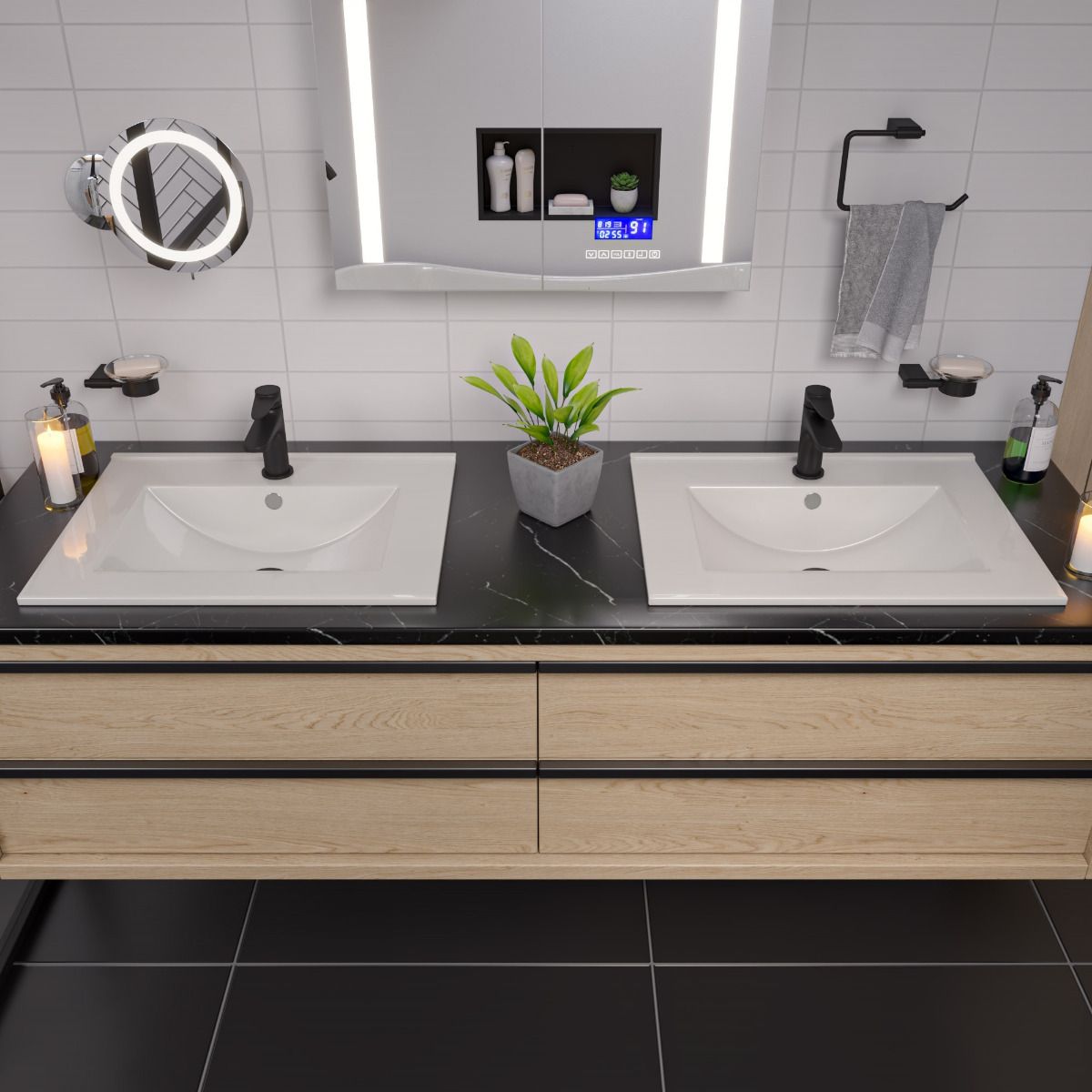 Feature 2 | Made of high grade ceramic porcelain also known as vitreous china. The most common used bathroom sink material of all times. |