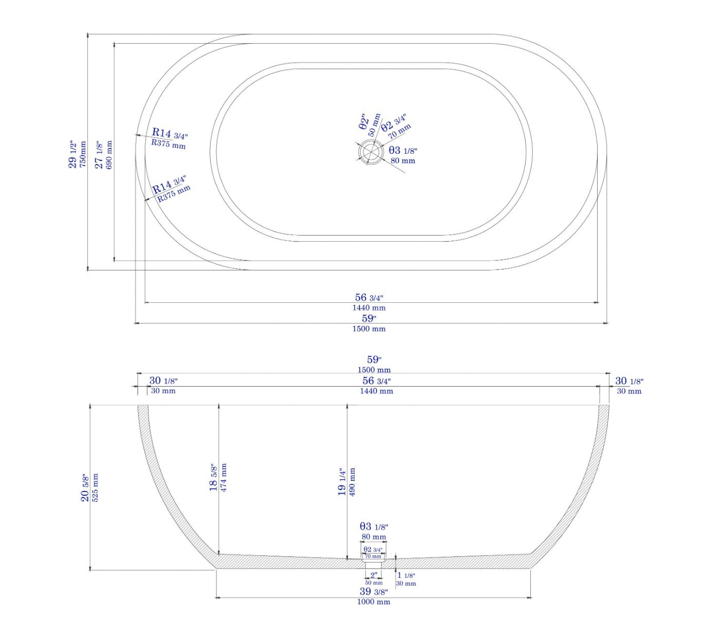 Short Description | Elegant and sleek, this 59" ALFI brand freestanding oval concrete soaking tub offers a modern upgrade to your home while transforming your bathing experience into a spa-like retreat. Superior quality construction provides you with an exceptionally durable material, as well as a smooth matte interior and exterior finish. Enjoy this stylish and durable design and transform your bathroom into an elegant and sophisticated oasis that is sure to make your everyday routine feel more luxurious. There's no better place to unwind than in the comfort of your own luxury soaking tub. |