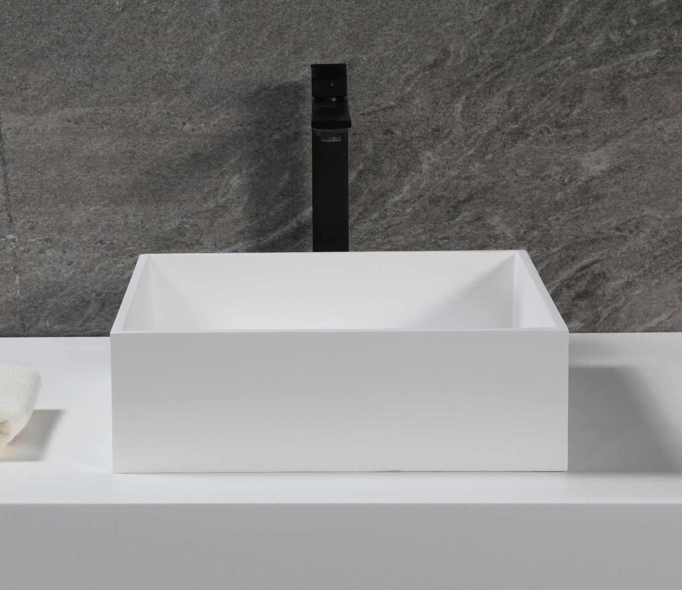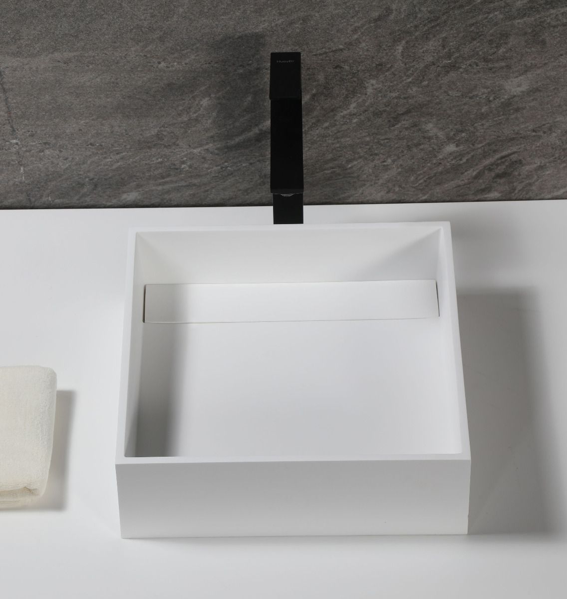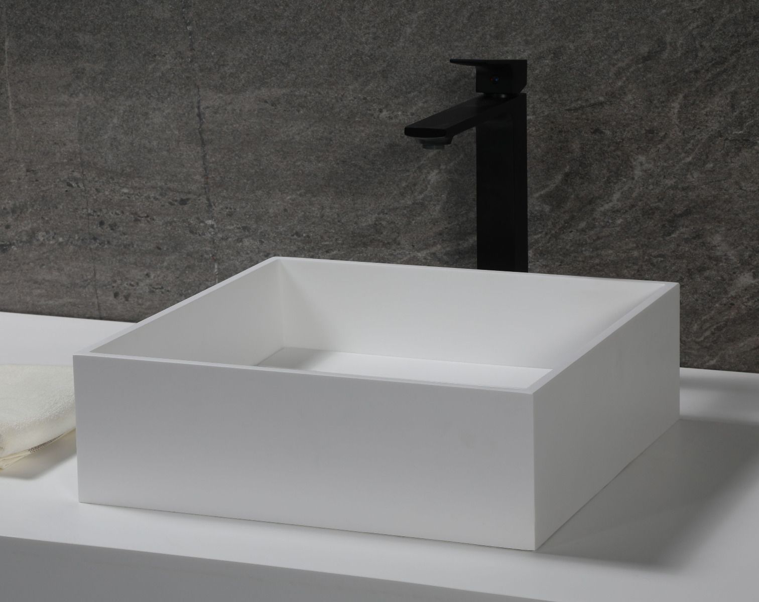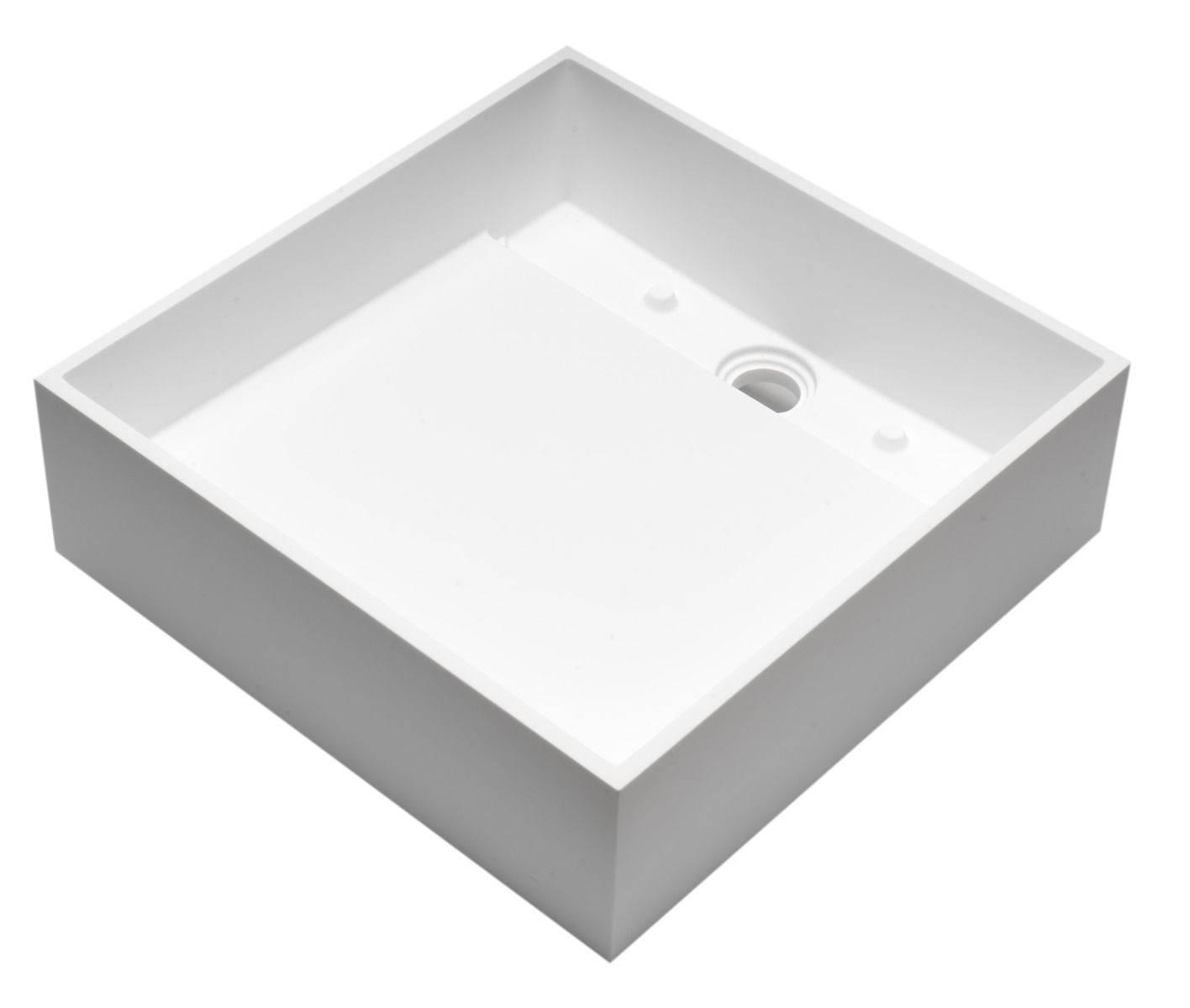 Short Description | Upgrade your bathroom with this sleek modern square sink made of solid surface composite. It's coolest feature is that the drain is completely concealed. It's designed with a contemoprary flair in mind with it's sharp corner radius and edges. |