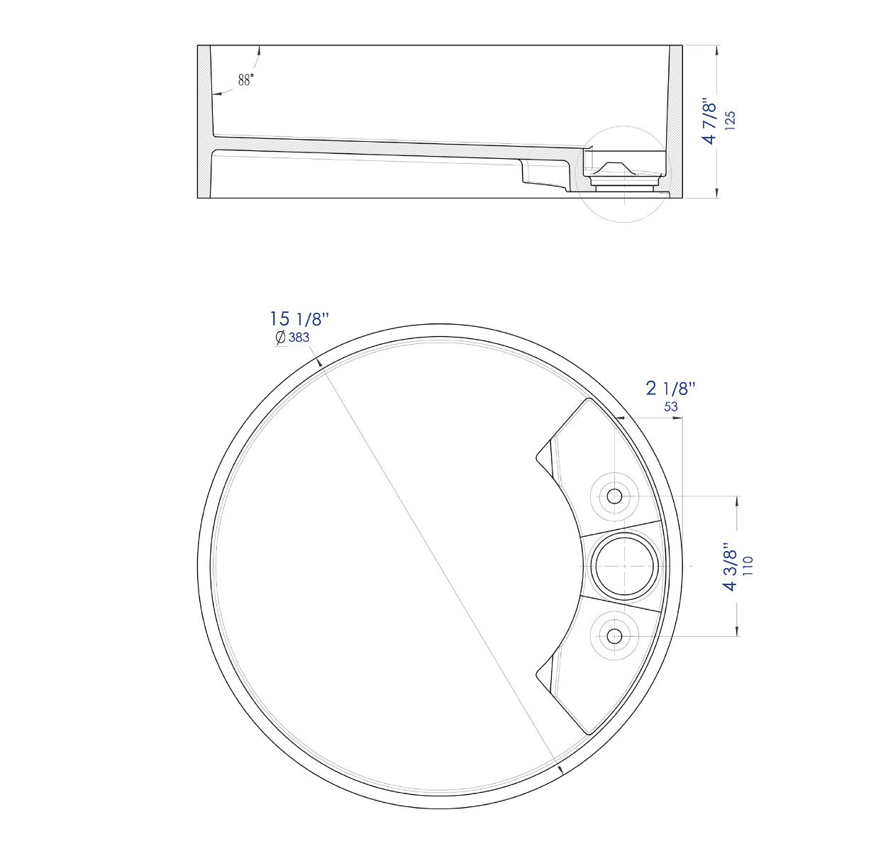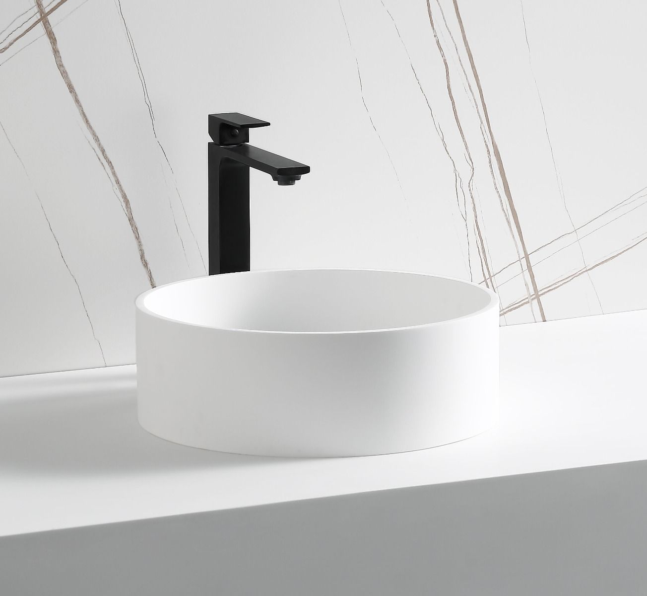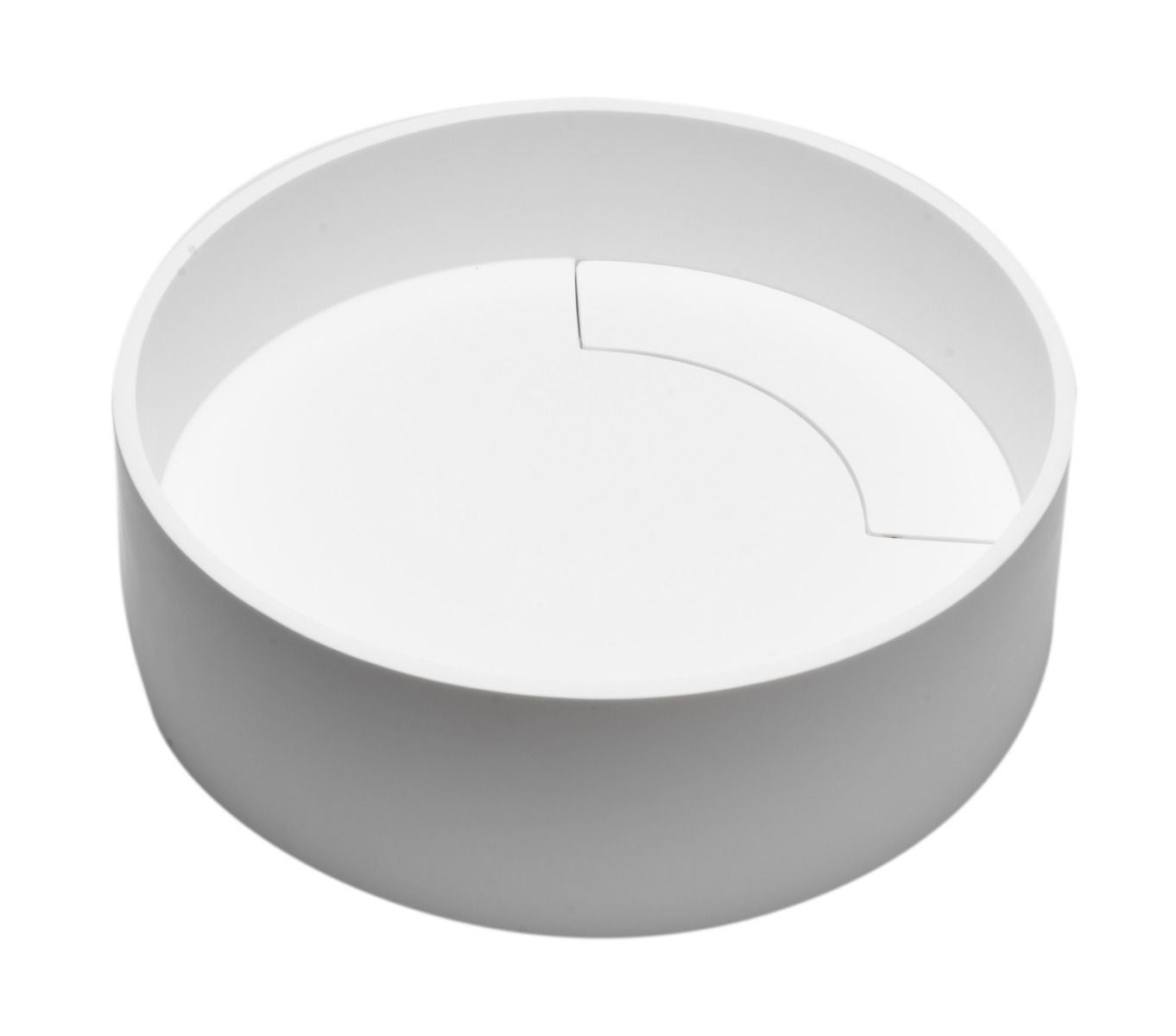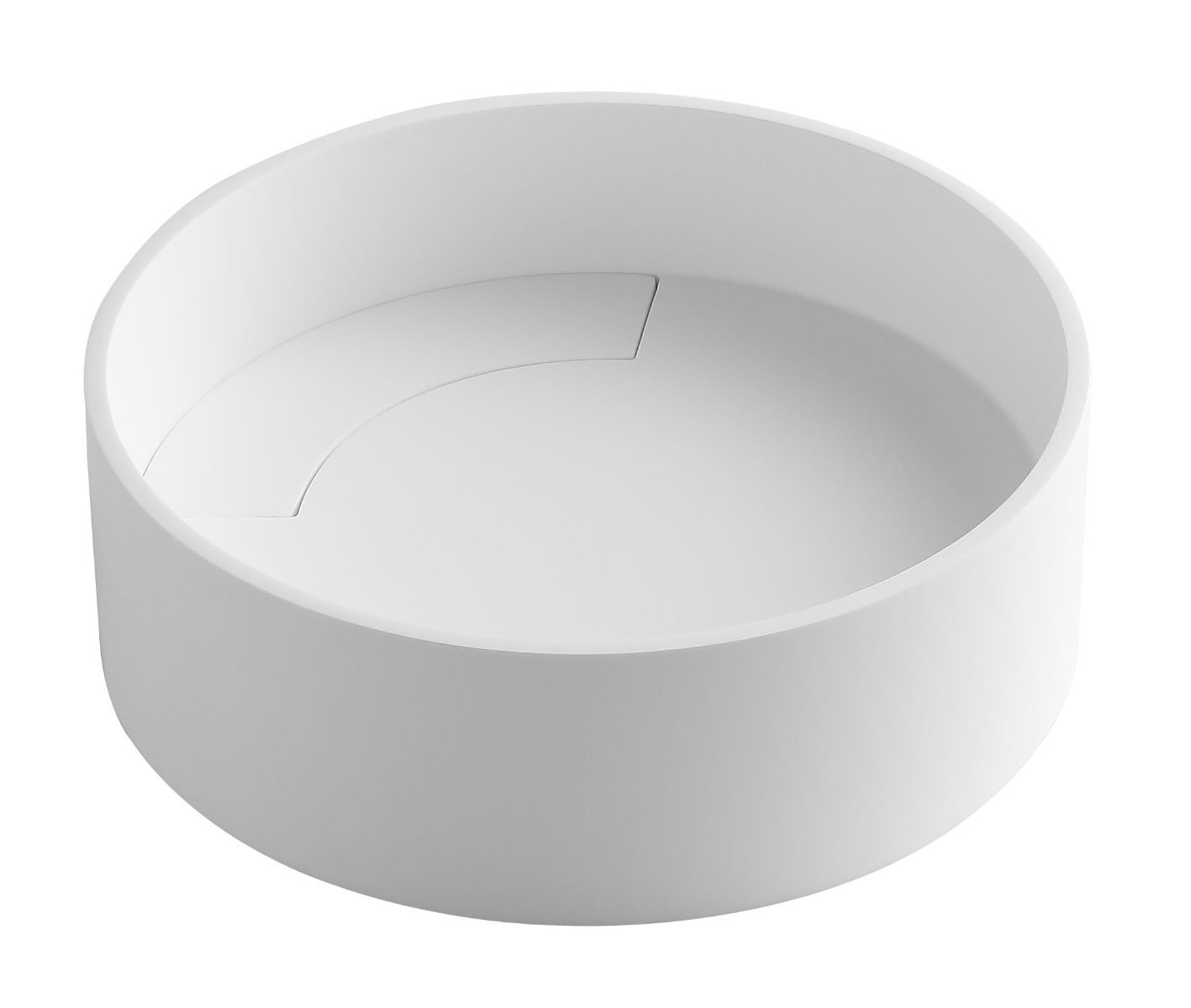 Short Description | Upgrade your bathroom with this sleek modern round sink made of solid surface composite. It's coolest feature is that the drain is completely concealed. It's designed with a contemoprary flair in mind with it's sharp corner radius and edges. |