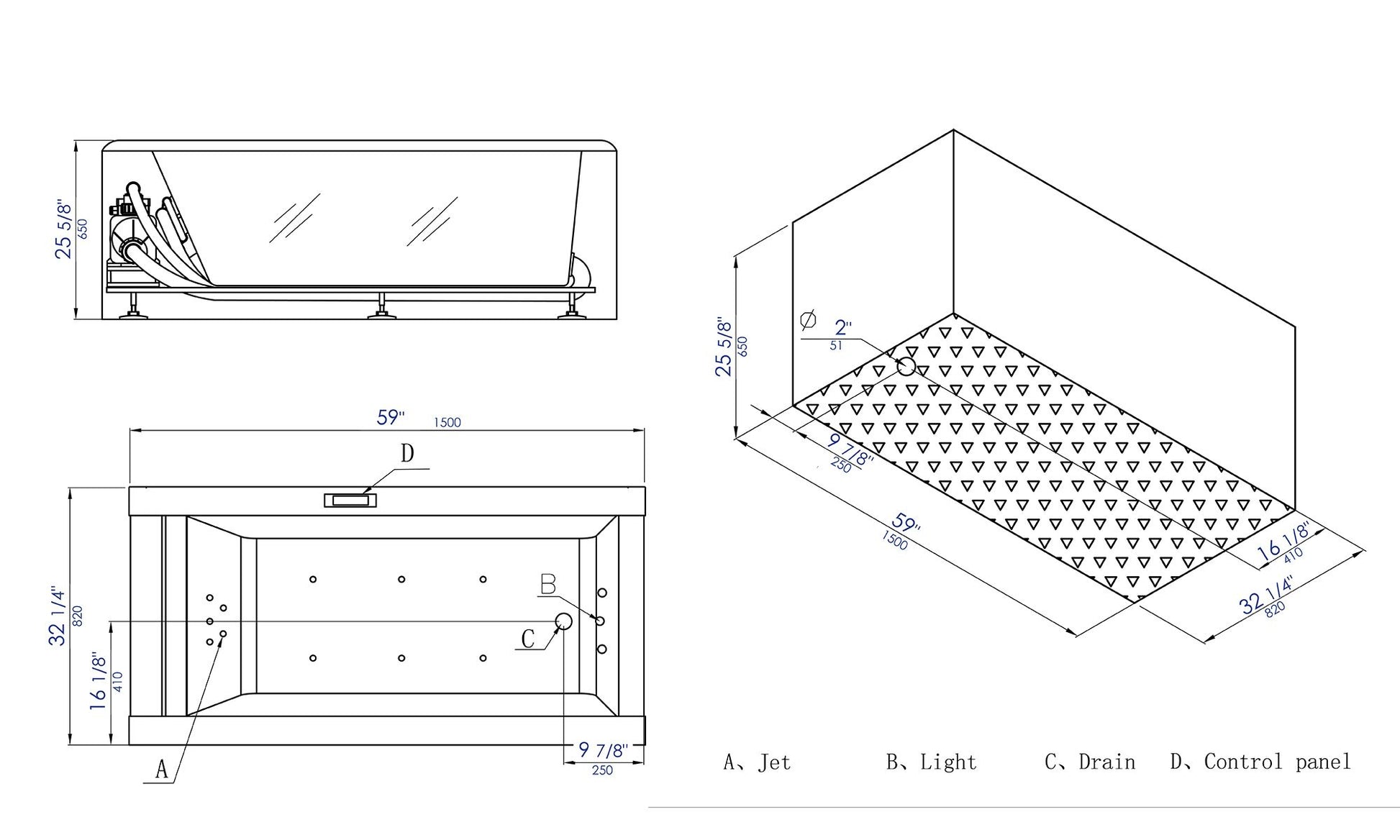Feature 7 | Featuring auto protection function for pump (if there is not enough water in the whirlpool bathtub the pump cannot be started). Also has 60 minutes auto shutdown function. |