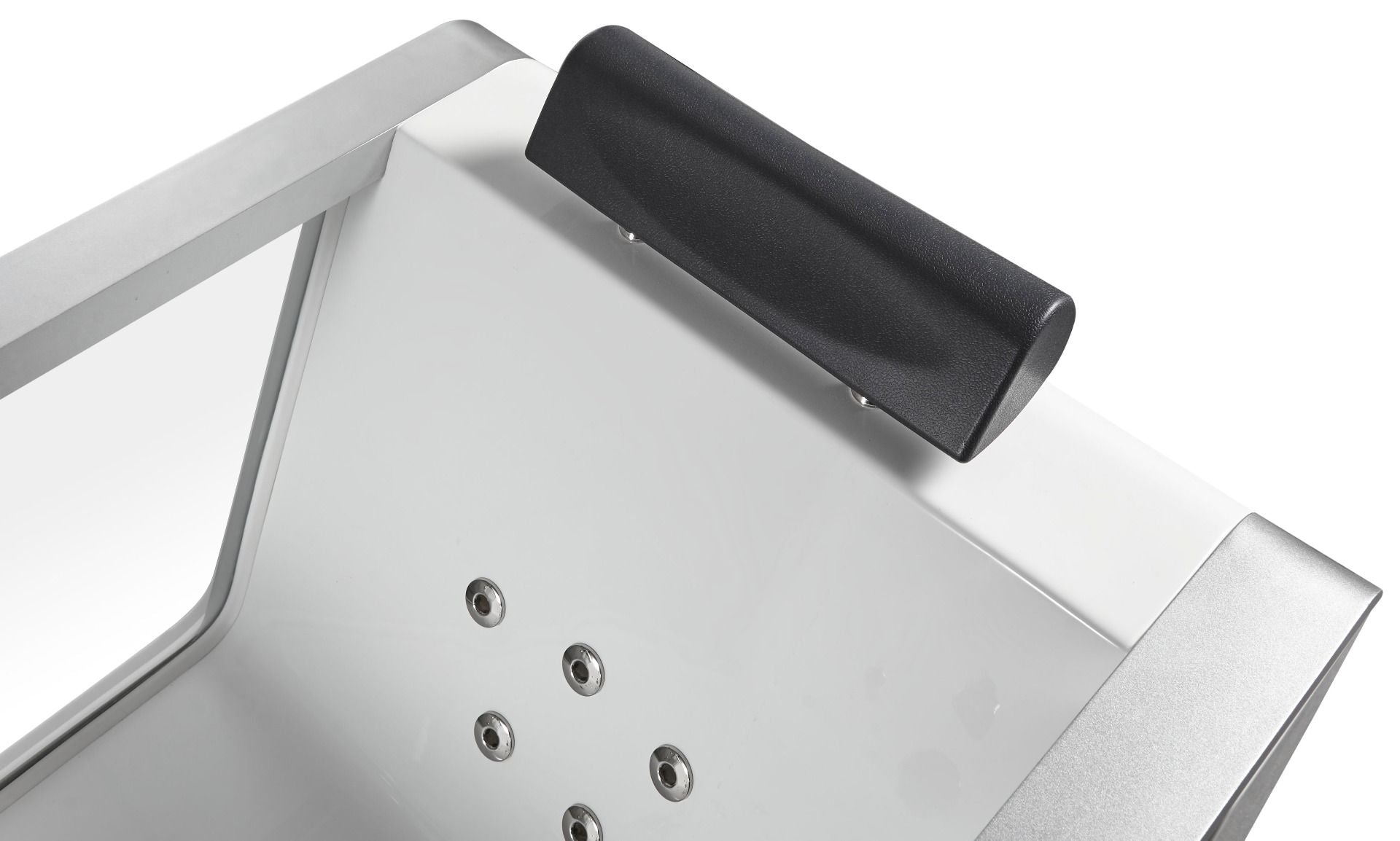 Feature 6 | Choose your favorite of 4 different levels of jet pressure or utilize the automatic gradual change of jet pressure from low to high in a loop. Includes 1 soft black pillow that sticks to the tub with suction cups for an even more comfortable experience. |