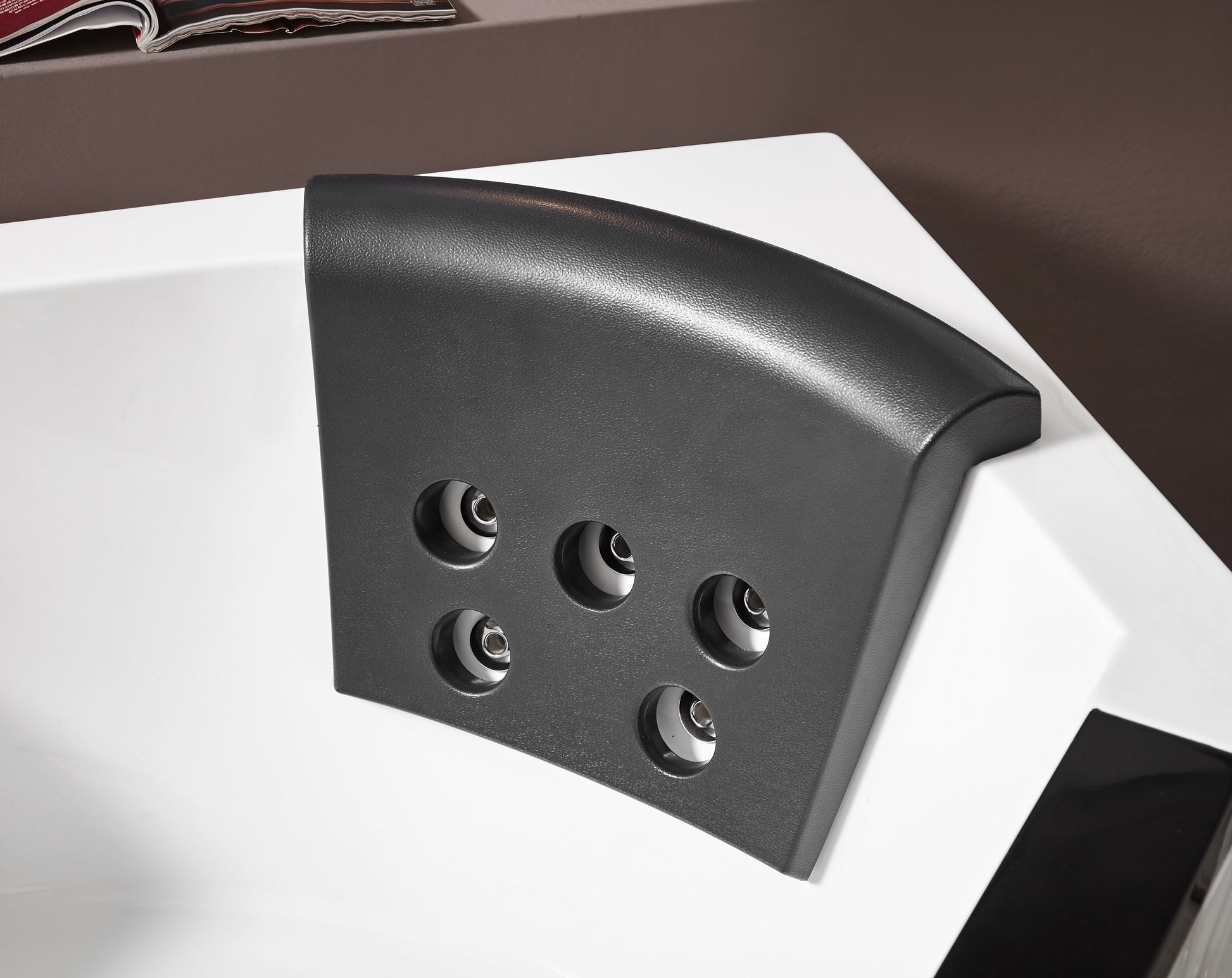 Feature 7 | Choose your favorite of 4 different levels of jet pressure or utilize the automatic gradual change of jet pressure from low to high in a loop. Includes 2 soft black pillows that stick to the tub with suction cups for an even more comfortable experience. |