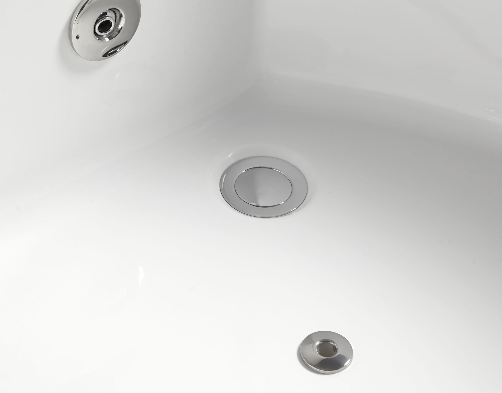 Feature 10 | Please note that this tub fills itself through the jets! Tub comes with chrome fixtures, but if you'd like you can replace them and use your own instead. Includes a square shaped hand held shower head. |