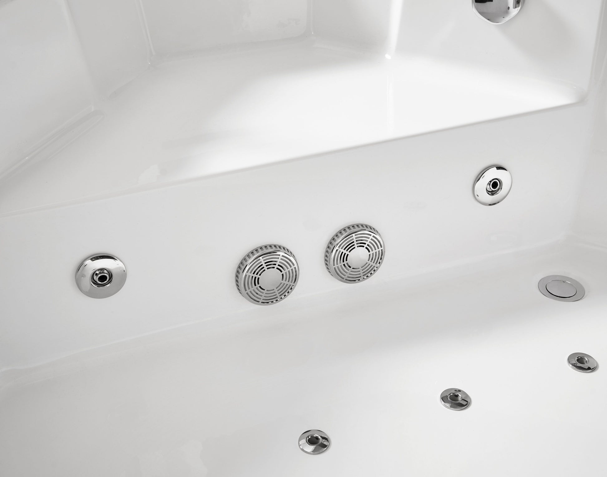 Feature 5 | Includes Inline Heater: Due to the mixture of air and water in whirlpool jetted tubs, the water temperature will cool more rapidly in comparison to traditional bathtubs. Designed to enhance and prologue the enjoyment of your whirlpool bathtub, inline heaters have a built-in thermostat, constantly maintaining the temperature of the circulating water in the tub, and offering you the incentive of a longer bathing experience. The heater will only work while the jets are operating. |