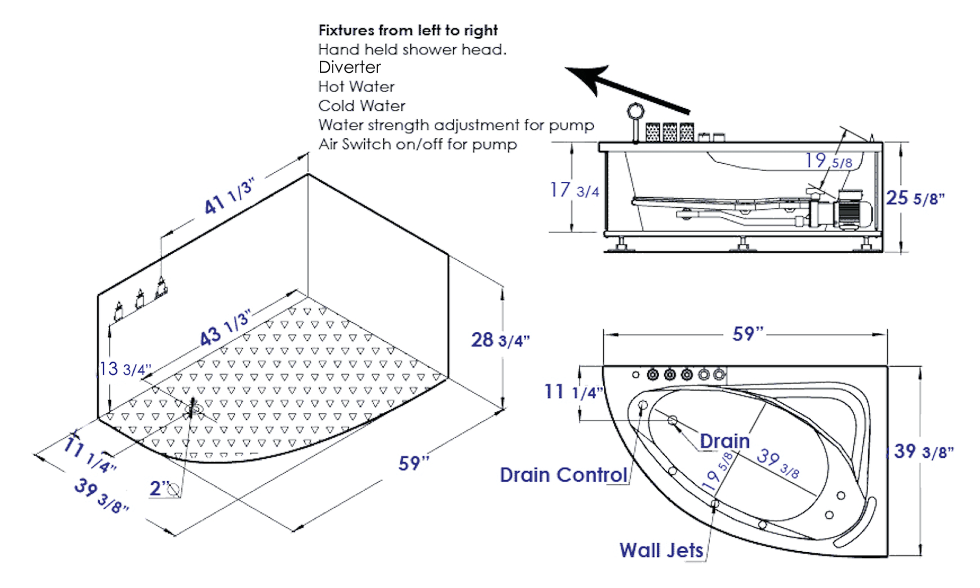 EAGO AM161-L 59" Single Person Corner White Acrylic Whirlpool Bath Tub