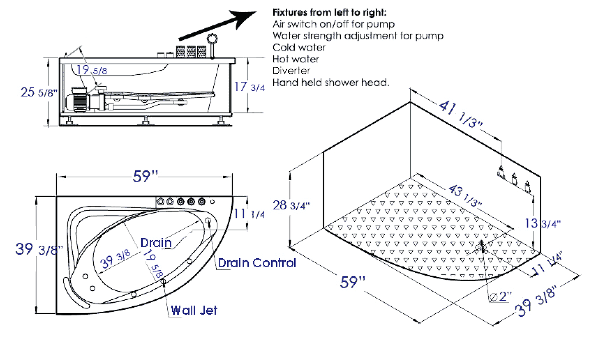 EAGO AM161-R 59" Single Person Corner White Acrylic Whirlpool BathTub