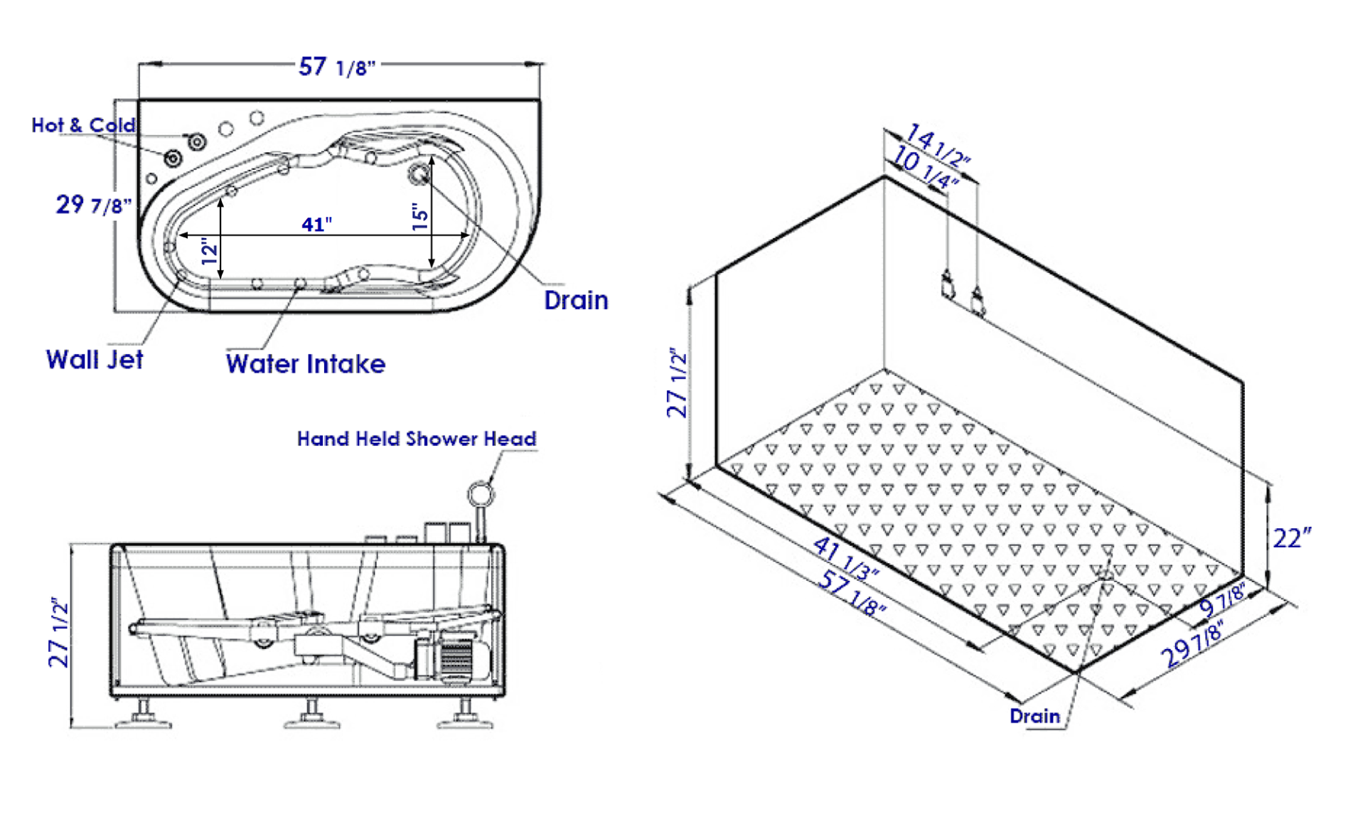 Feature 5 | Tub must be installed flush to wall, as one side is open for easy access. |