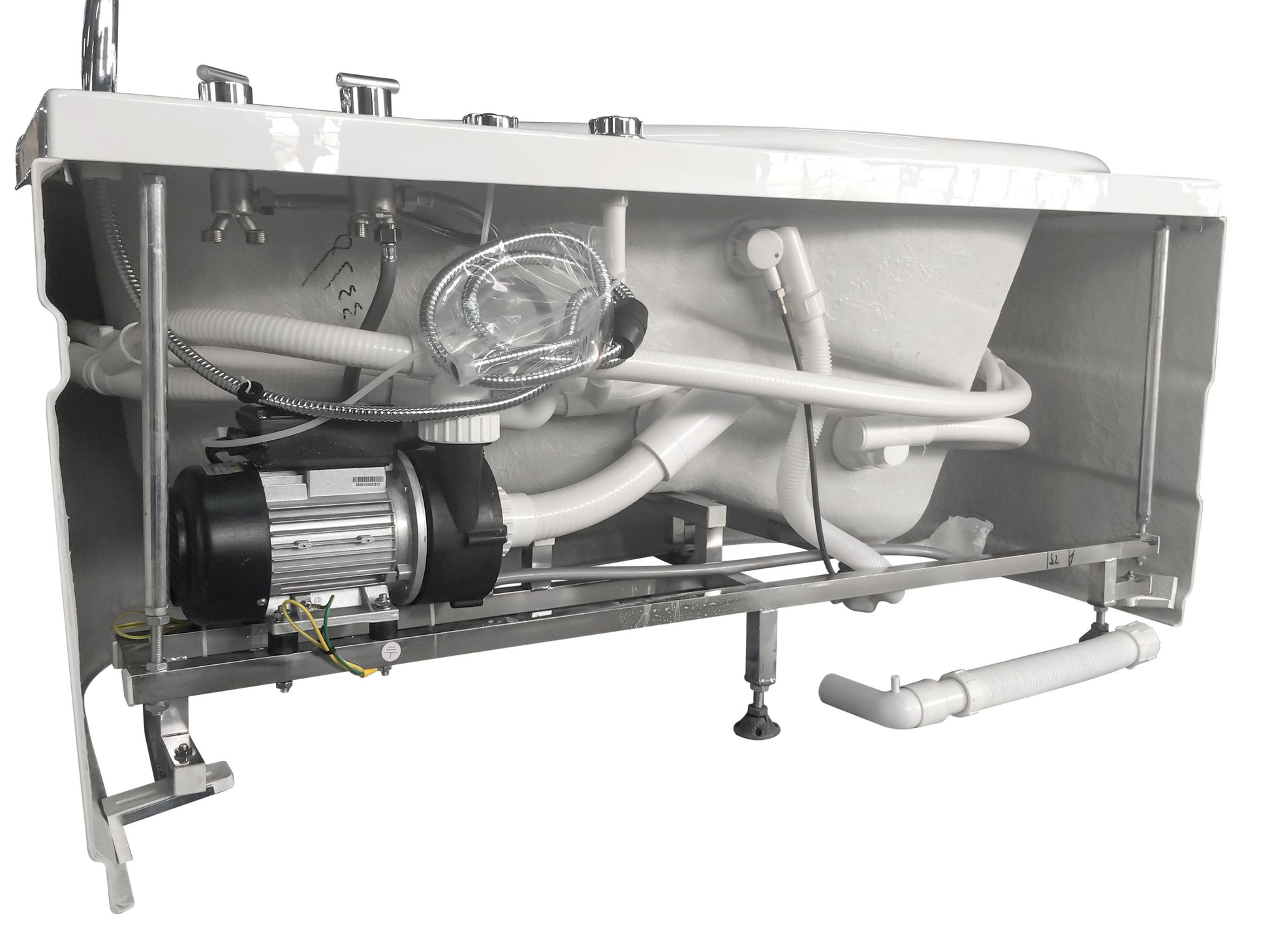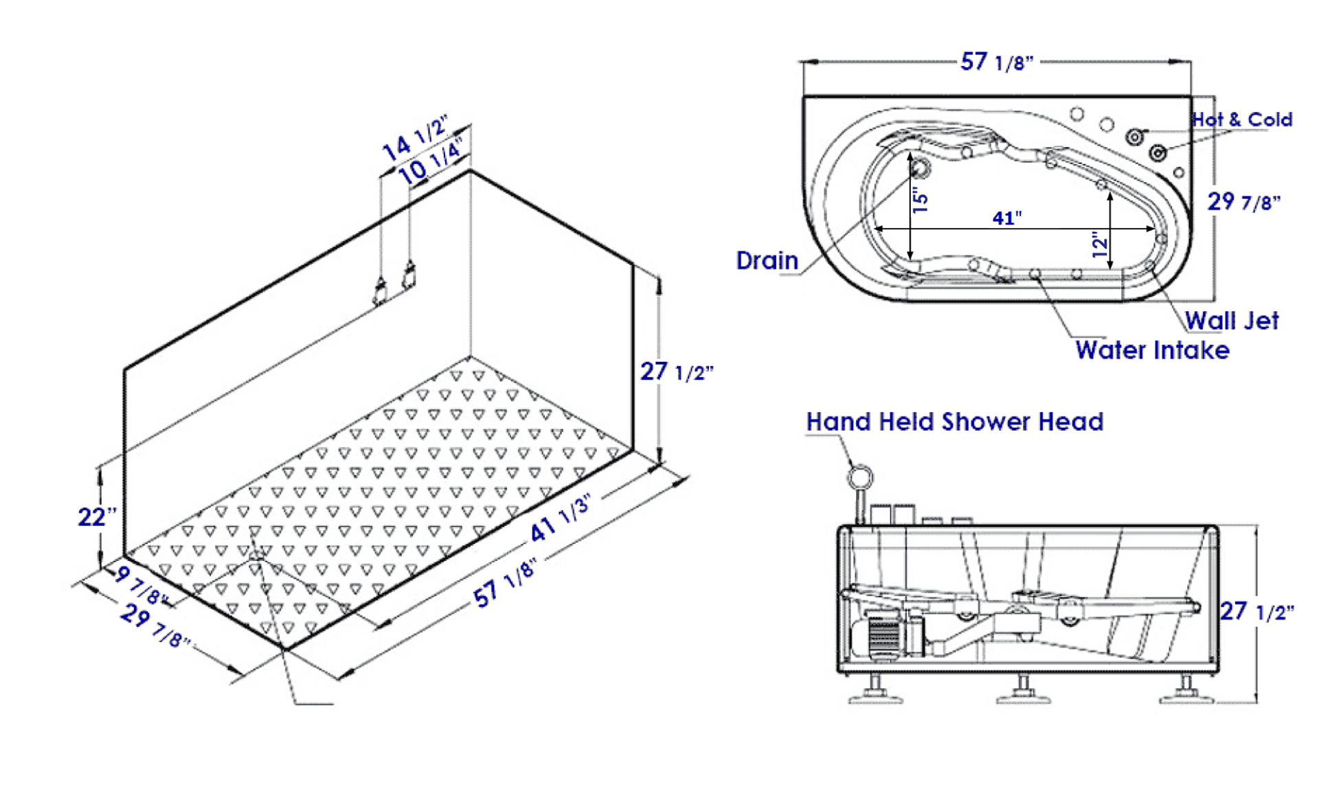 Feature 5 | Tub must be installed flush to wall, as one side is open for easy access. |