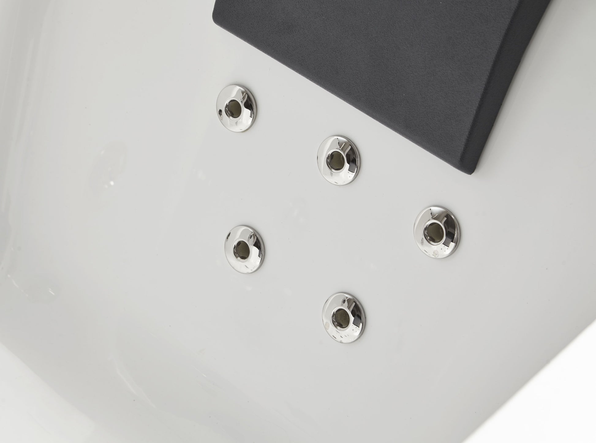 Feature 6 | Choose your favorite of 4 different levels of jet pressure or utilize the automatic gradual change of jet pressure from low to high in a loop. Includes 2 soft black pillows that stick to the tub with suction cups for an even more comfortable experience. |