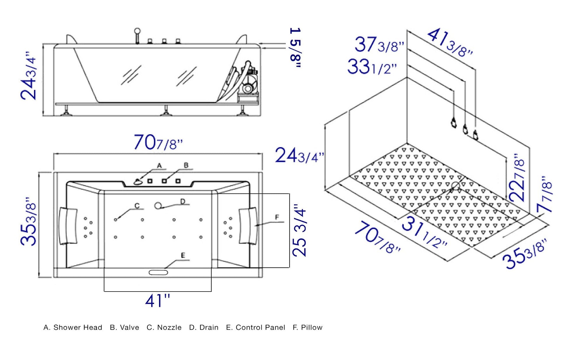 Feature 2 | Please note that this tub fills itself through the jets! Tub comes with chrome fixtures, but if you'd like you can replace them and use your own instead. |